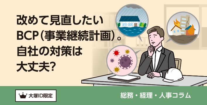 BCP(Business Continuity Plan、事業継続計画)とは、企業が自然災害やシステム障害、交通機関のマヒなどの緊急事態において、重要な事業を中断させないため、または中断しても早期に復旧させるための計画です。